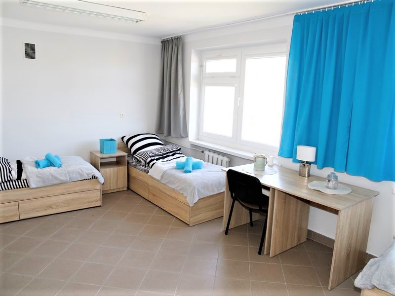 - łazienki z prysznicami na korytarzu oraz kuchnię i pralnię